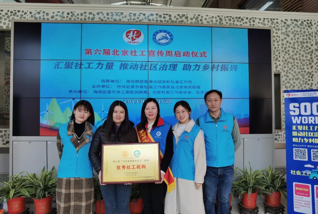 为弘扬社工精神、传播社工理念、宣传社工典型,扩大社工影响,在中共北京市委社会工作委员会北京市民政局指导下,北京社会工作者协会组织开展了第七届“寻找首都最美社工”评选活动。北城心悦社会工作事务所经过层层选拔与评选后脱颖而出,荣获首都十佳“优秀社工机构”殊誉。