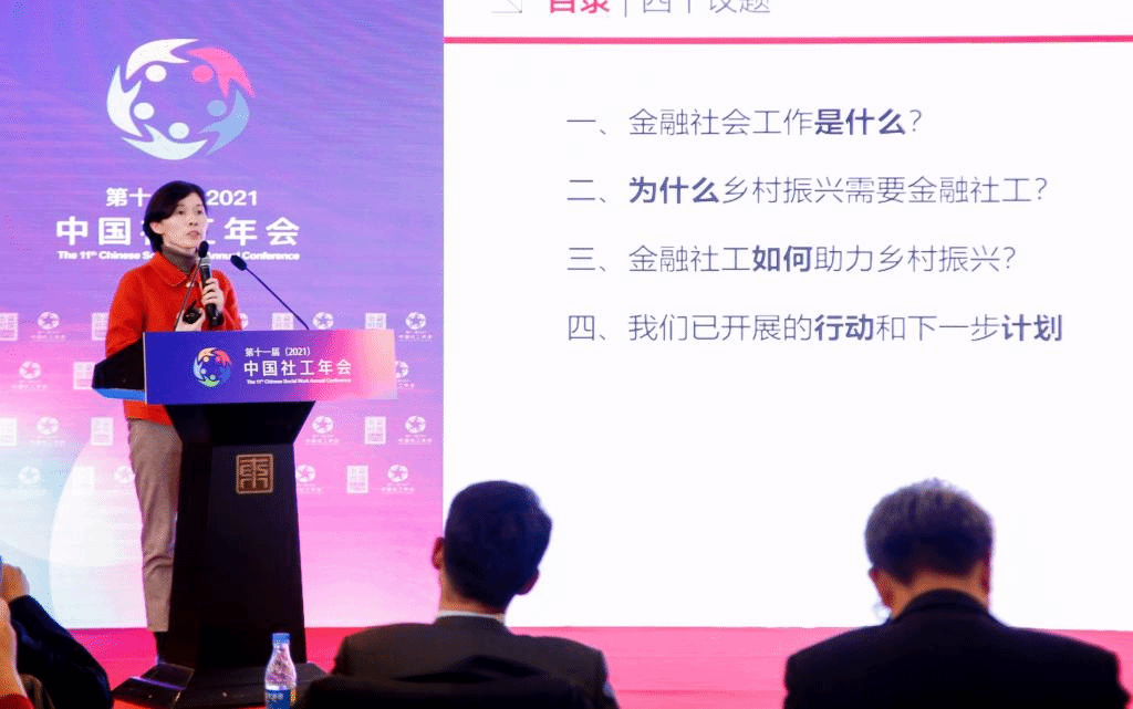 ac米兰官网中文网站公共管理学部MSW导师周玲受邀在年会做主旨发言人,以《金融社会工作助力乡村振兴》为主题介绍了金融社工助力乡村振兴的重要意义。