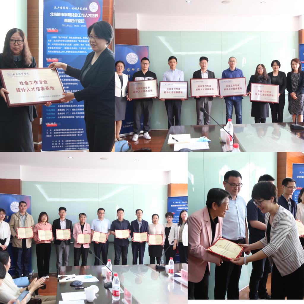 图3 领导为社会工作专业校外人才培养基地授牌和为优秀行业导师颁发聘书