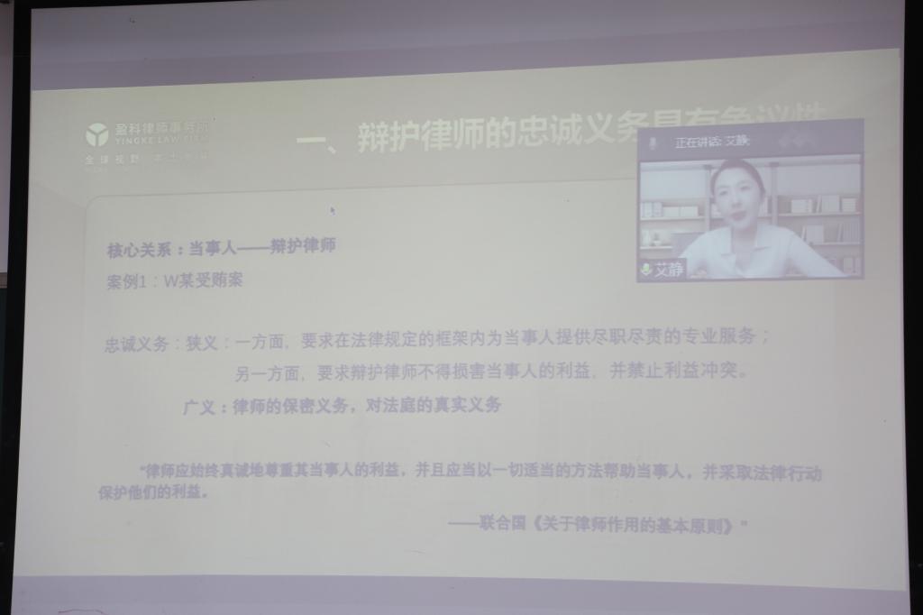 赵攀律师从“法律人看世界”的主题出发,引导同学们培养法律的思维,从法律人的视角去分析问题、解释问题,并分享了精彩的案例。田帅律师、李桂超律师从自己的从业经历,和同学们探讨“如何成为一名优秀的律师”,引导学生从大一开始树立职业发展的理想。艾静律师从辩护律师的职业道德出发和同学们分享了在这个领域工作的经验,并提出了期望。佟炫雨律师从业时间不长,和同学们的年龄差距较小,分享了从毕业后到现在几年的心路历程,给有志于从事律师行业的同学以鼓励。田宇律师和刘晔律师从律师的职业转换的角度,给同学们提出了职业发展的建议,鼓励大家积极投身国家的法治建设。