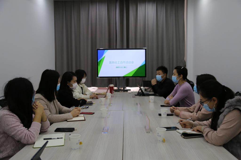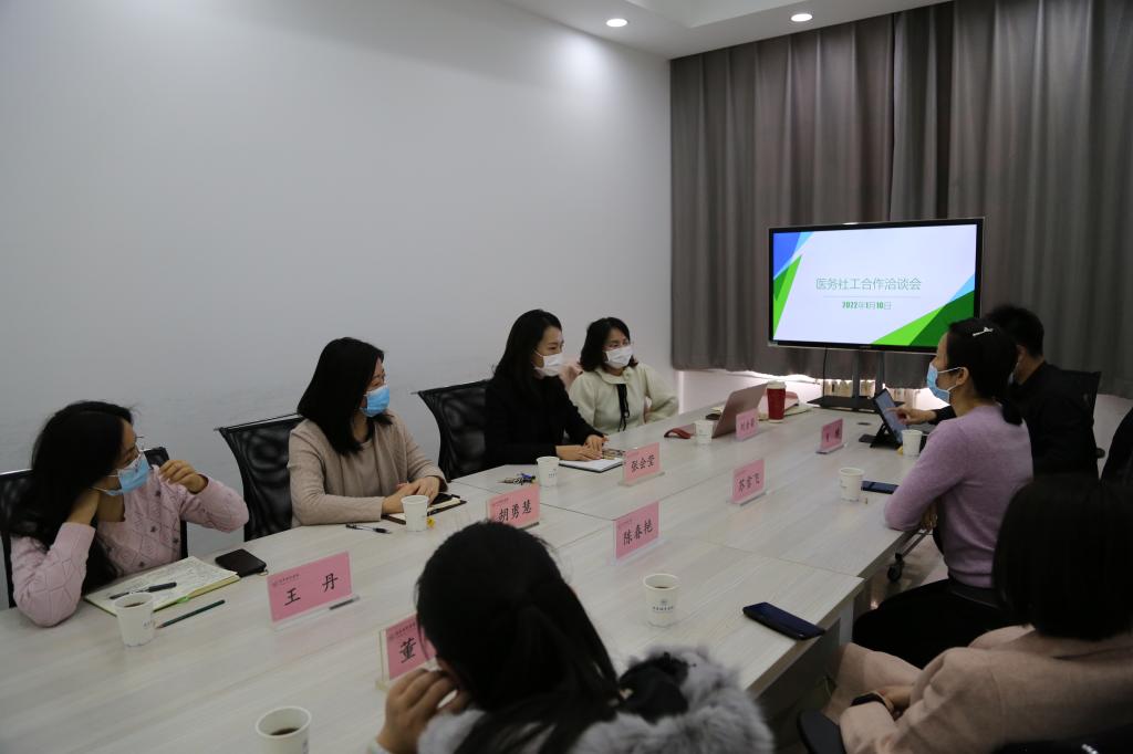 张会莹主任详细介绍了公管学部专业设置、师资配备等建设情况。重点指出双方可以通过加强人才交流、实习实践、医务社工项目等领域合作,实现高校与社区卫生服务中心的优势互补与资源共享。双方加强合作有利于在医务社工领域实现新的突破,强调研究项目要聚焦一个重点领域,突出成效、突出亮点。苏雪飞书记重点介绍了项目团队构成以及所开展社区服务、个案小组进展情况。指出了双方合作的重要性及必要性,针对目前医务社工领域还处于积极探索阶段,双方要进一步加强全方位、深层次的合作,坚持专业化定位,多元化探索。最大限度发挥好医务社工所带来的积极作用和有利价值。