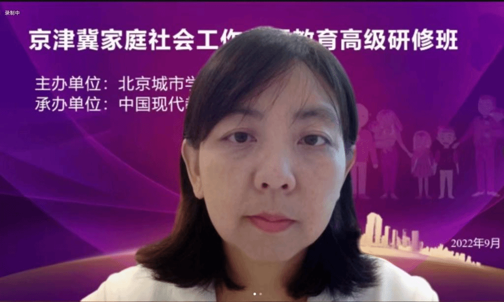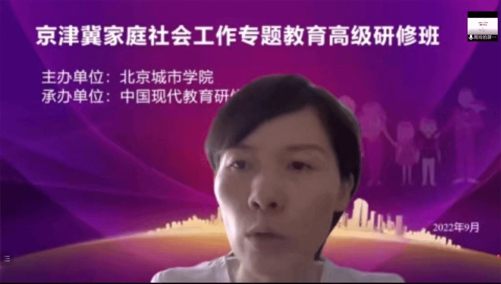 本次高级研修班时间为9月17、18、24、25日,共4天,按照高水平、小规模、重特色的要求,邀请国内家庭社会工作领域七位专家授课,采取主题报告、专题研讨、学术交流等方式进行,共有来自京津冀地区的百余位学员参加。研修内容主要有家庭指导所涉及的法律、政策、儿童发展、家庭社会工作方法、家庭金融能力建设、萨提亚家庭治疗等实务技巧等六大模块内容。协助受训者从宏观、中观、微观层面掌握家庭指导的通识性内容,社会工作的概念、理念,特殊家庭的干预实务和方法。9月17日-18日两天,北京师范大学屈智勇教授、复旦大学赵芳教授、房山区春燕社会工作事务所班春燕所长和ac米兰公管学部周玲副教授已经为学员们带来了《循证家庭社会工作的理念与应用案例》《家庭政策与家庭社会工作:重点与趋势》《社会心理服务介入困境青少年实务工作探索》《家庭资产建设的理论与国内外实践》4个专题讲座,学员们线上互动积极、反响热烈。