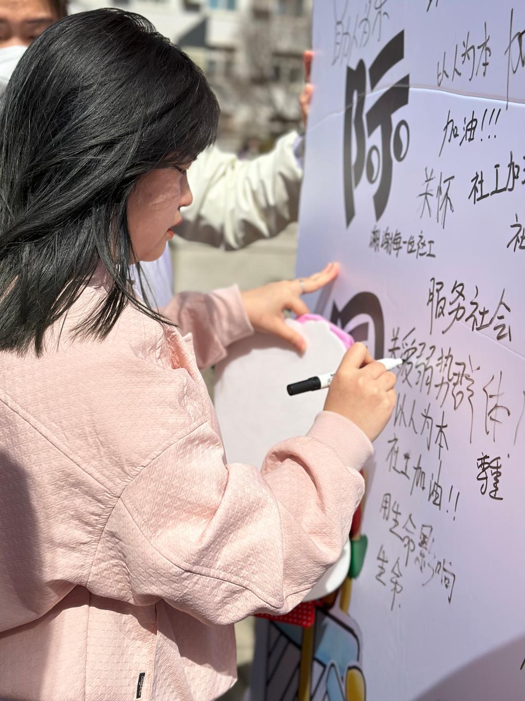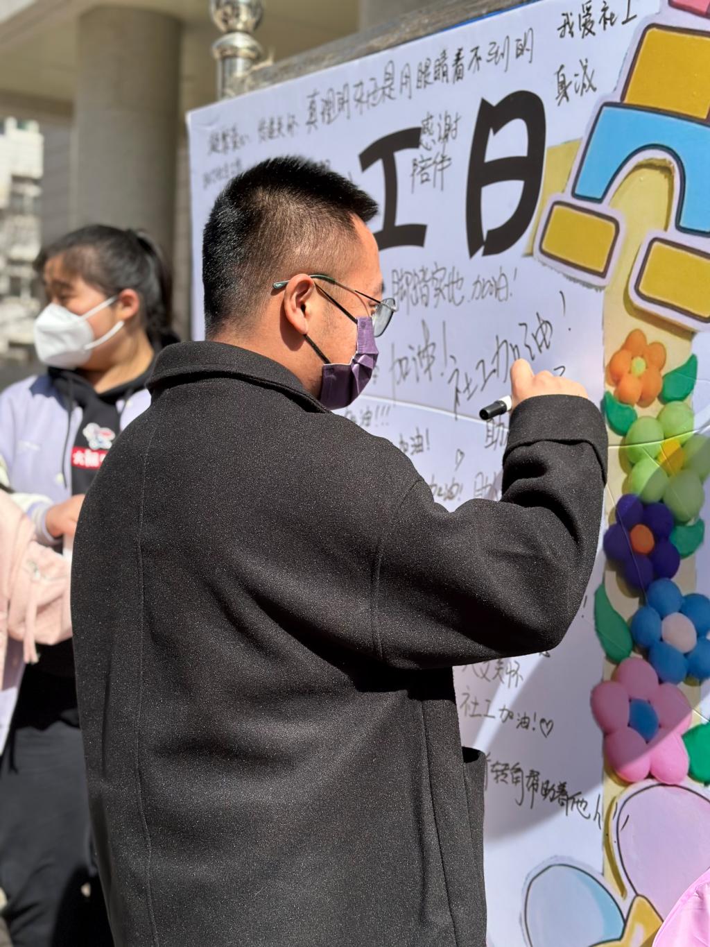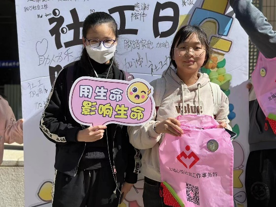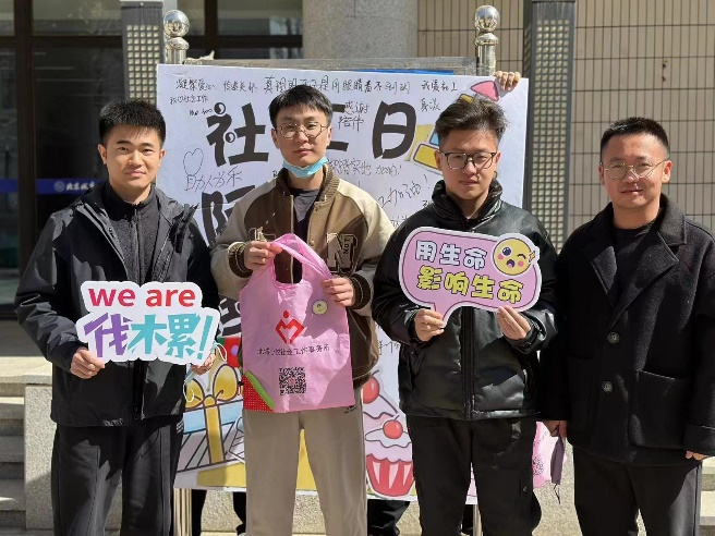 2023年3月15日,公共管理学部萤火社联合北城心悦社会工作事务所于航天城校区举办了“国际社工日”主题宣传活动。