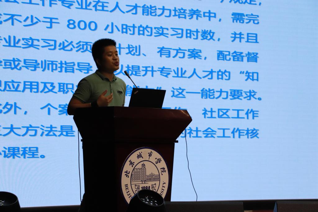 社会工作专业入学教育活动在航天城报告厅举行,由学部张一苇老师主持。第一个环节由教研室主任娄缤元、社会工作专业实习负责人宋利、学部教学助理张一苇分别从北城社工发展、人才培养特色、专业课程实践、专业实习实践、专业科研实践等全面向新生介绍了社会工作专业。