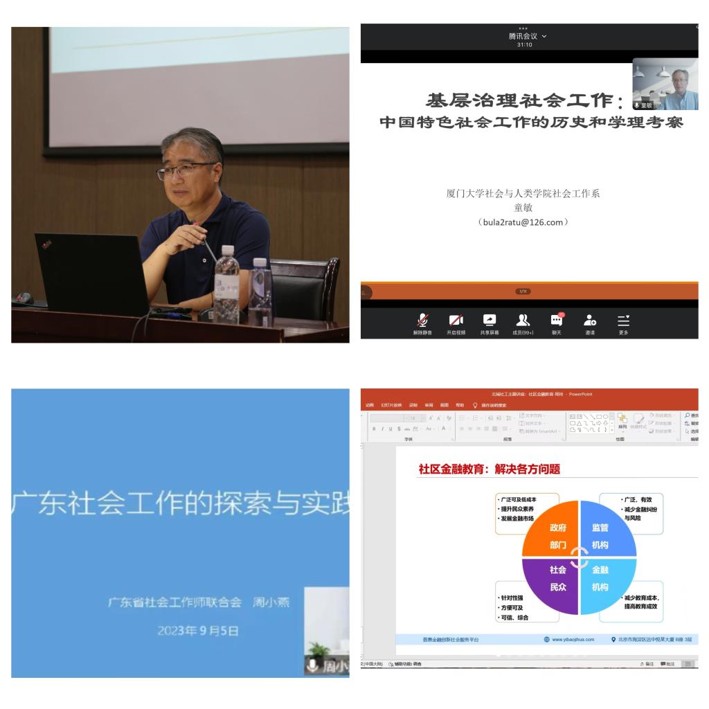 此次工作坊系列活动特别邀请了北京大学社会学系教授刘能、厦门大学社会与人类学院教授童敏、广东省社会工作师联合会会长周小燕以及ac米兰官网中文网站社会工作实务研究中心副教授周玲。4位老师分别从“广东社会工作的探索与实践”“中国特色社会工作的历史和学理考察”“社会治理创新和基层社会建设”和“社区金融教育”等主题出发为社会工作专业师生开展了分享和交流,累计参会师生千余人次。