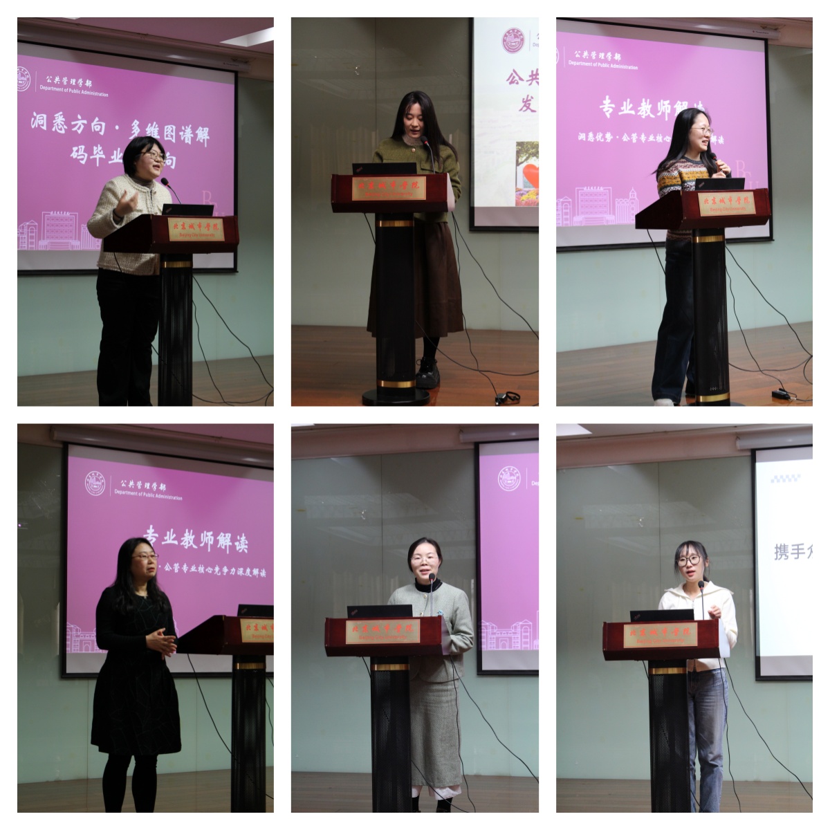 本次家长论坛邀请了学部副主任何倩、党支部副书记王欢,以及北京市众禾社会工作发展中心高级主管郭丽娜、北京方圆众合教育科技有限公司人事部经理宋佳慧等企业代表,与专业教师、实习导师、辅导员一同,为到场家长与学生解读就业形势、梳理职业发展路径。
