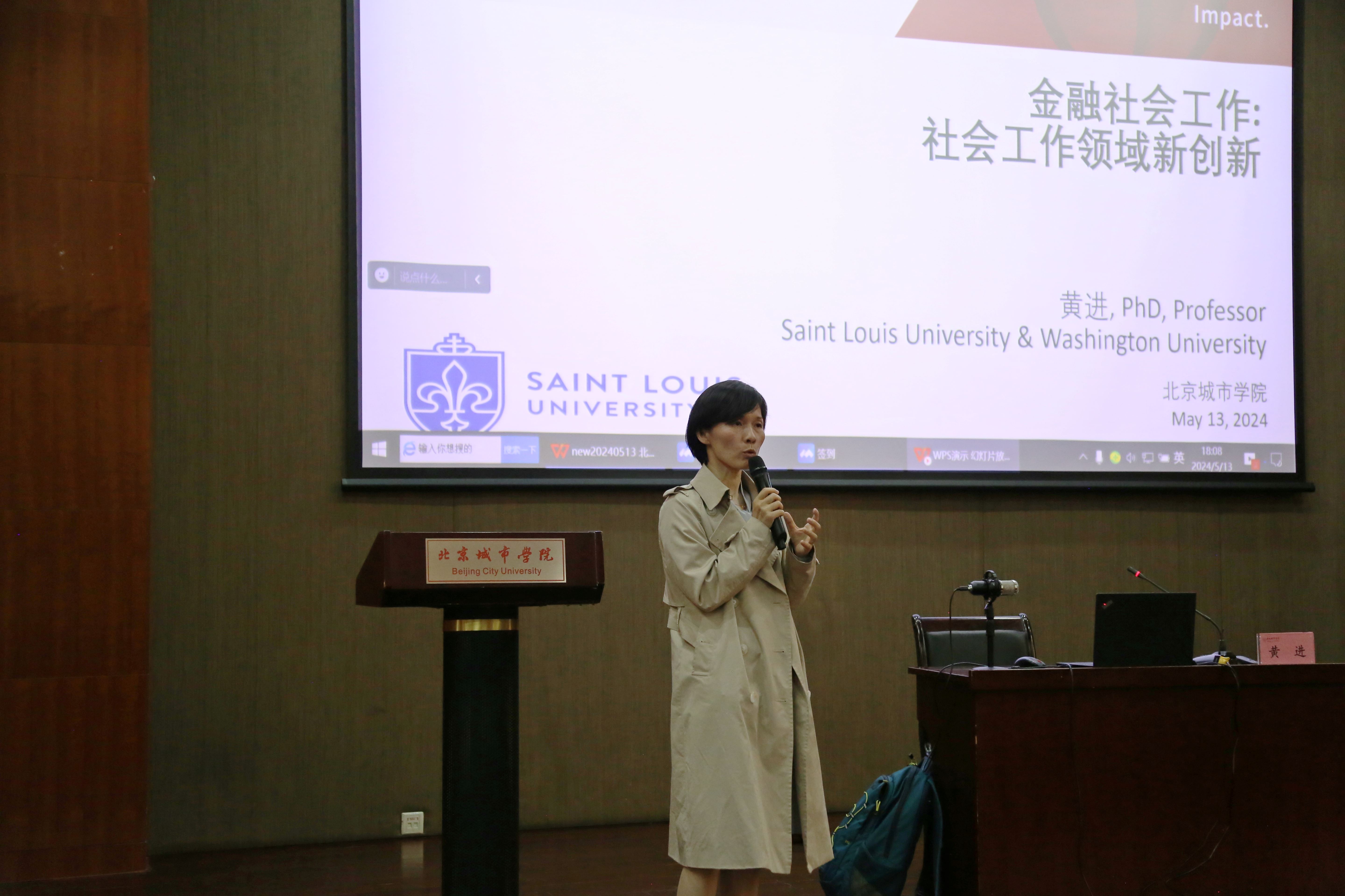 为了提升社会工作专业学生对国内外公益慈善和金融社会工作服务整体状况的基本了解,推动金融社会工作理论与实务的深度对话,探索金融领域和公益领域的公益金融人才队伍建设培养路径,公共管理学部社会工作实务研究中心特邀美国圣路易斯大学黄进教授于5月13日开展“金融社会工作:社会工作的创新与发展”专题讲座,公管学部周玲副教授主持,社会工作专业120余名师生参与了本次讲座。