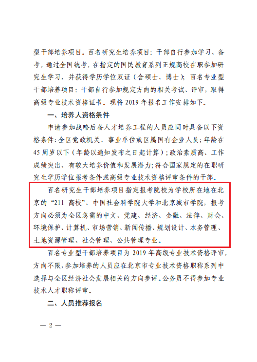 纳入顺义区“战略后备人才培养工程”招生专业目录
