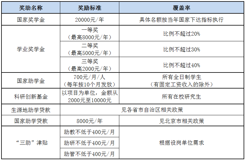 根据北京市财政局、北京市教育委员会制定的《北京市研究生国家奖学金、学业奖学金、国家助学金管理暂行办法》,ac米兰研究生设置有国家奖学金、学业奖学金和助学金,国家奖学金和学业奖学金按照奖学金评选办法进行评选,助学金面向非定向学生。同时,学校设置研究生“三助”岗位,为研究生提供勤工助学机会。