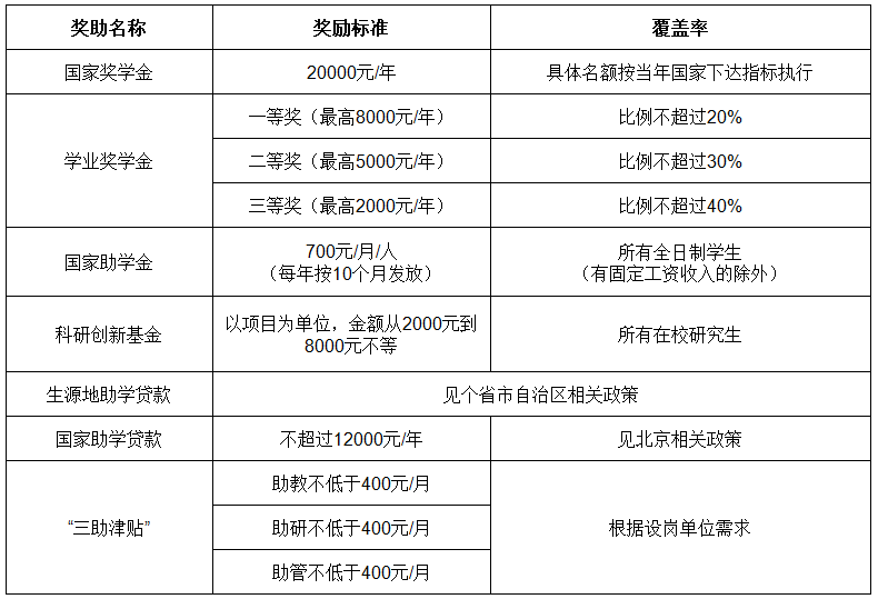 根据北京市财政局、北京市教育委员会制定的《北京市研究生国家奖学金、学业奖学金、国家助学金管理暂行办法》,ac米兰研究生设置有国家奖学金、学业奖学金和助学金,国家奖学金和学业奖学金按照奖学金评选办法进行评选,助学金面向非定向学生。同时,学校设置研究生“三助”岗位,为研究生提供勤工助学机会。