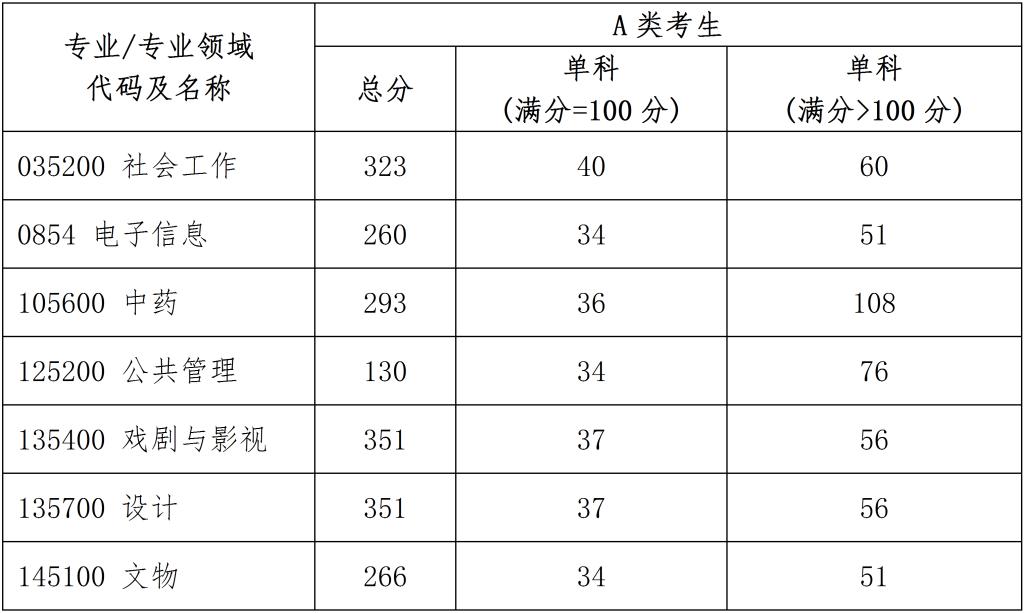 “退役大学生士兵专项计划”考生进入复试的初试基本分数要求
