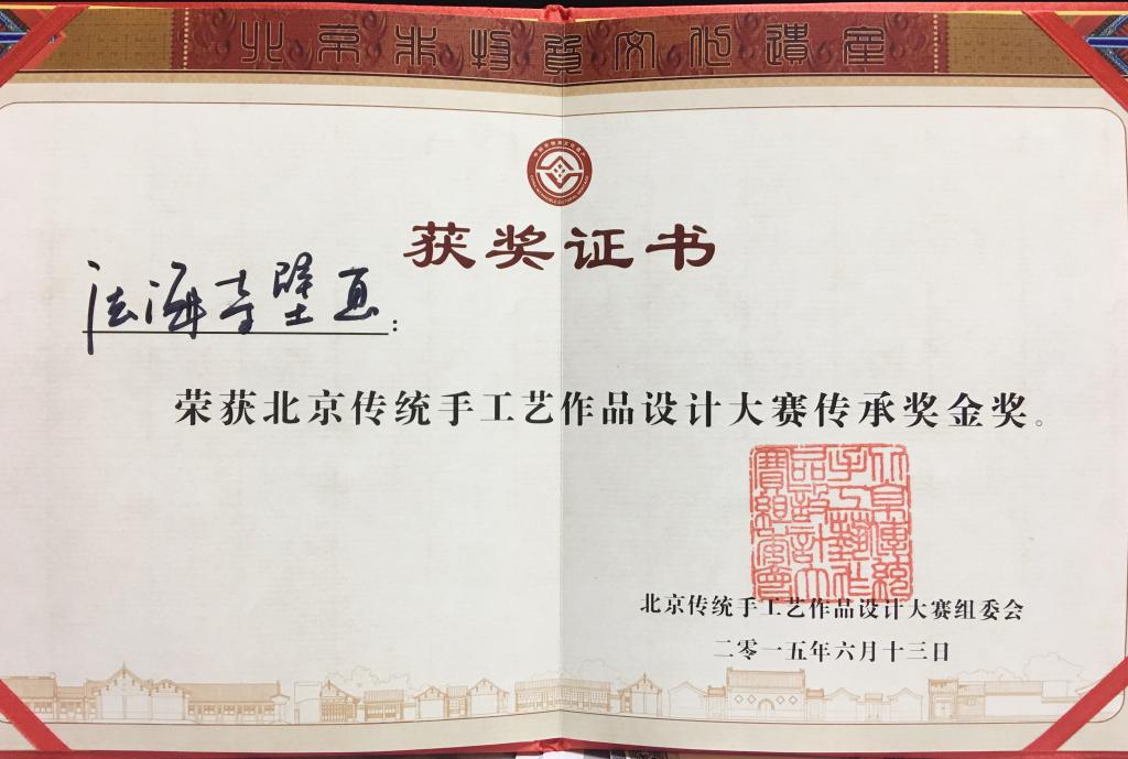 2015年6月,作品《法海寺壁画》在文化部举办的首届“京津冀传统手工艺作品设计大奖赛”中获得金奖;