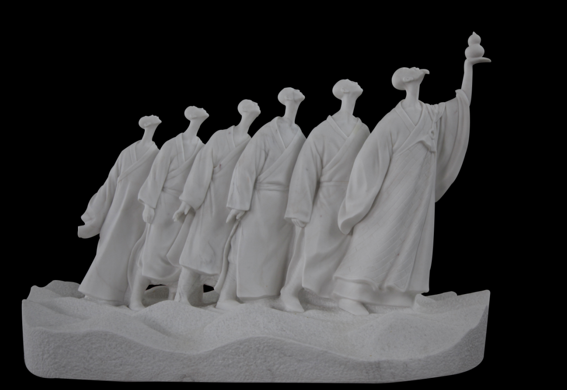 瓷塑作品《仕女枕》 瓷塑作品《庄周梦蝶》 瓷塑作品《领头羊》