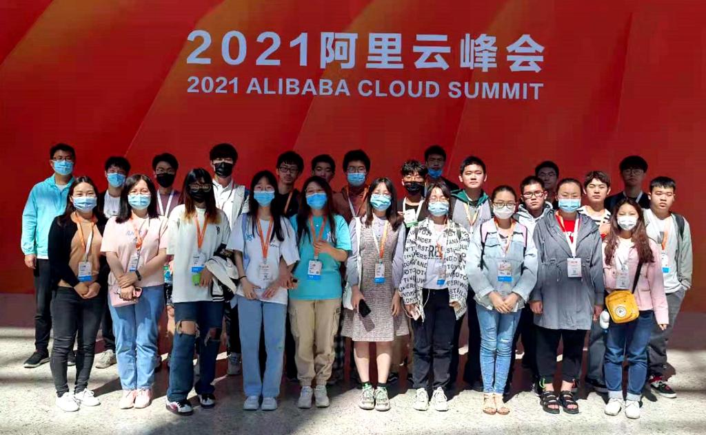 图3:师生参加2021年度阿里云开发者大会;图4:企业项目综合实战成果展示活动