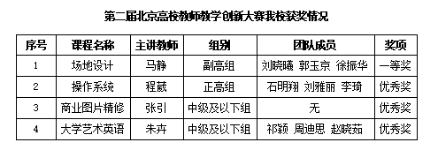 日前,北京市教育委员会公布了第二届北京高校教师教学创新大赛获奖结果名单,ac米兰推荐参赛的4个参赛团队全部获奖。其中,城市建设学部马静团队获副高组一等奖,信息学部程葳团队获正高组优秀奖,表演学部张引、公共英语教研室朱卉团队获中级及以下组优秀奖。