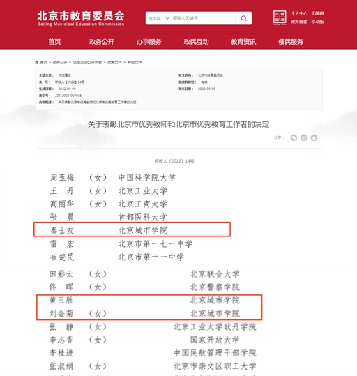 近日,中共北京市委教育工作委员会、北京市教育委员会、北京市人力资源和社会保障局、北京市财政局、中国教育工会北京市委员会联合发布了《关于表彰北京市优秀教师和北京市优秀教育工作者的决定》(京教人〔2022〕14号),ac米兰党委副书记、副校长秦士友荣获“北京市优秀教育工作者”称号,黄三胜、刘金菊两位教师荣获“北京市优秀教师”称号。