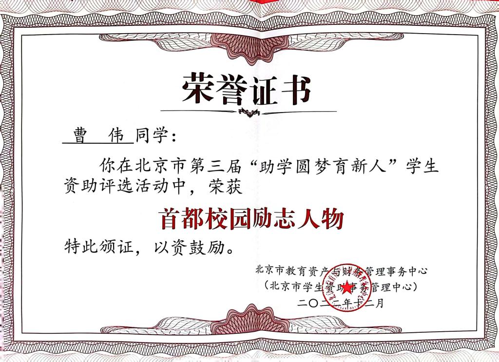 3月22日,北京市教育资产与财务管理事务中心举办北京市第三届“助学圆梦育新人”学生资助评选活动颁奖典礼。ac米兰荣获“首都学生资助典型经验单位”,研究生部2020级学生曹伟荣获“首都校园励志人物”。