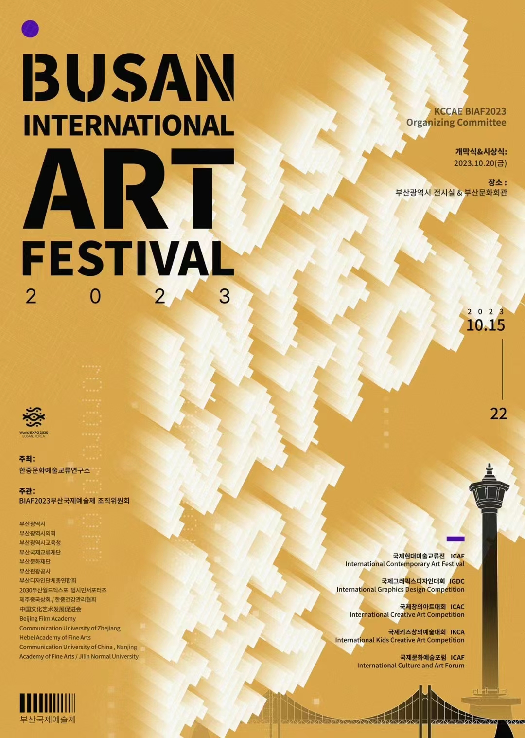 BIAF釜山国际艺术节是国际上具有权威影响力的艺术赛事,2023年的主题是“美好世界”。本届赛事共有来自中国、韩国、日本、美国、英国、俄罗斯等74个国家(地区)的1187件作品入围。