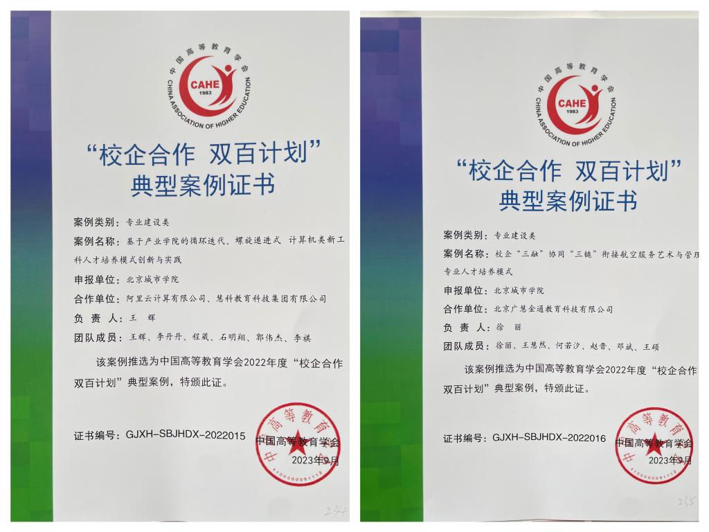 信息学部《基于产业学院的循环迭代、螺旋递进式计算机类新工科人才培养模式创新与实践》、经济管理学部《校企“三融”协同“三链”衔接航空服务艺术与管理专业人才培养模式》、国际文化与传播学部《基于“翻译工作室”的校企协同应用型翻译人才培养研究》3个案例入选典型案例提名奖,其中《基于产业学院的循环迭代、螺旋递进式计算机类新工科人才培养模式创新与实践》《校企“三融”协同“三链”衔接航空服务艺术与管理专业人才培养模式》2个案例入选典型案例。