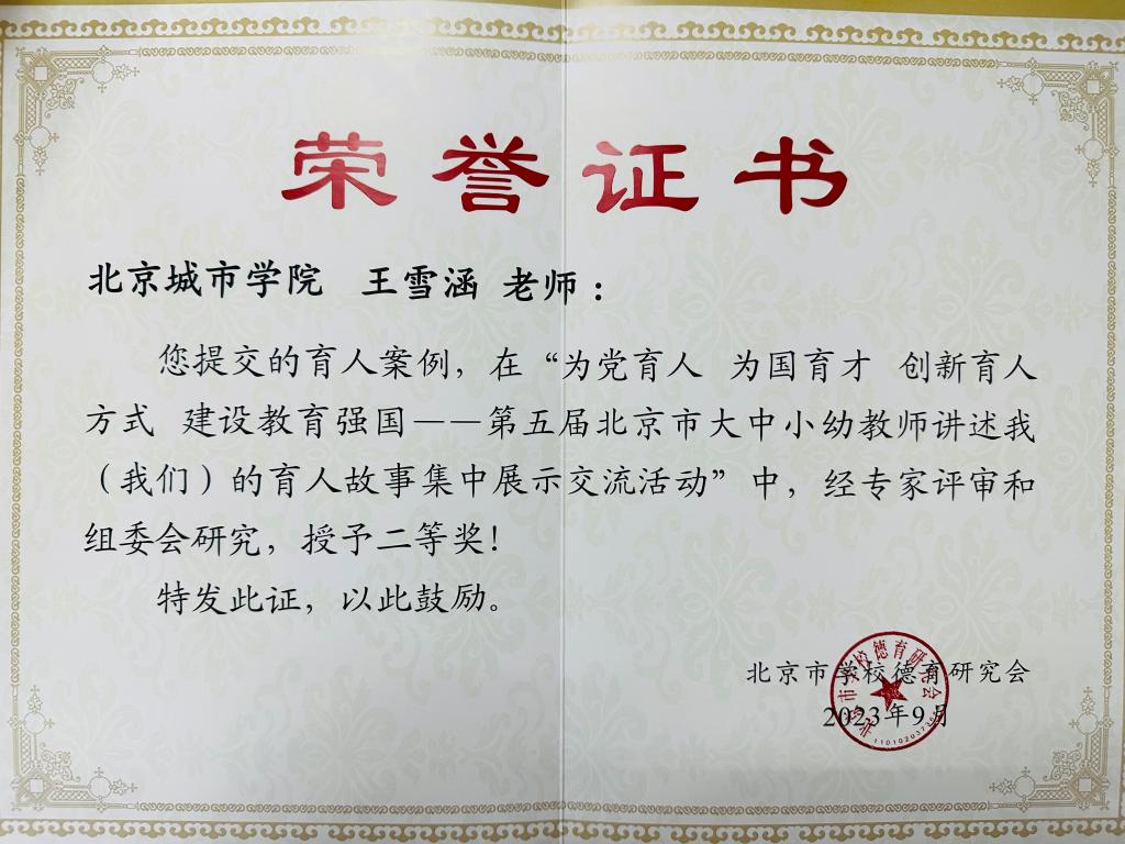 9月9日,在由北京市委教育工委、北京市教委主办,北京市学校德育研究会承办的“为党育人、为国育才——第五届北京市大中小幼教师讲述我(我们)的育人故事”集中交流展示活动中,ac米兰经济管理学部禹磊、生物医药学部王雪涵两位老师的育人案例分别获得一等奖和二等奖。