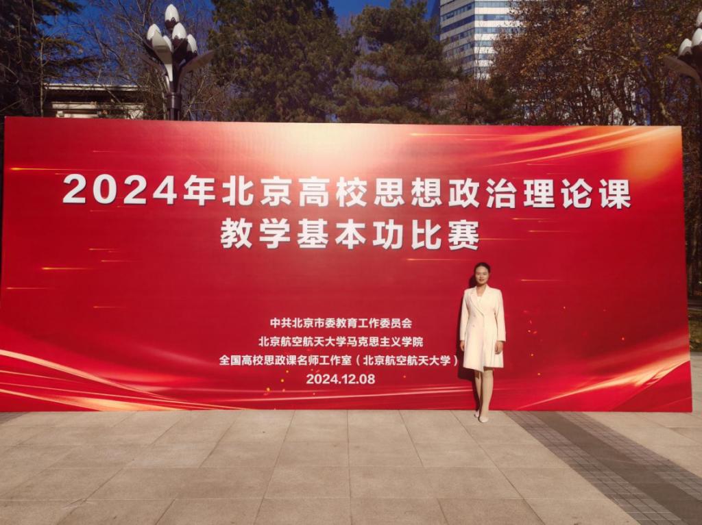 北京高校思想政治理论课教学基本功比赛由北京市委教育工委主办,赛制分为预赛和决赛。预赛按照思政课程设置了“习近平新时代中国特色社会主义思想概论”“马克思主义基本原理”等七个赛道。刘佳佳在“马克思主义基本原理”赛道以预赛一等奖的成绩、刘浩然在“习近平新时代中国特色社会主义思想概论”赛道以预赛二等奖的成绩双双进入决赛。