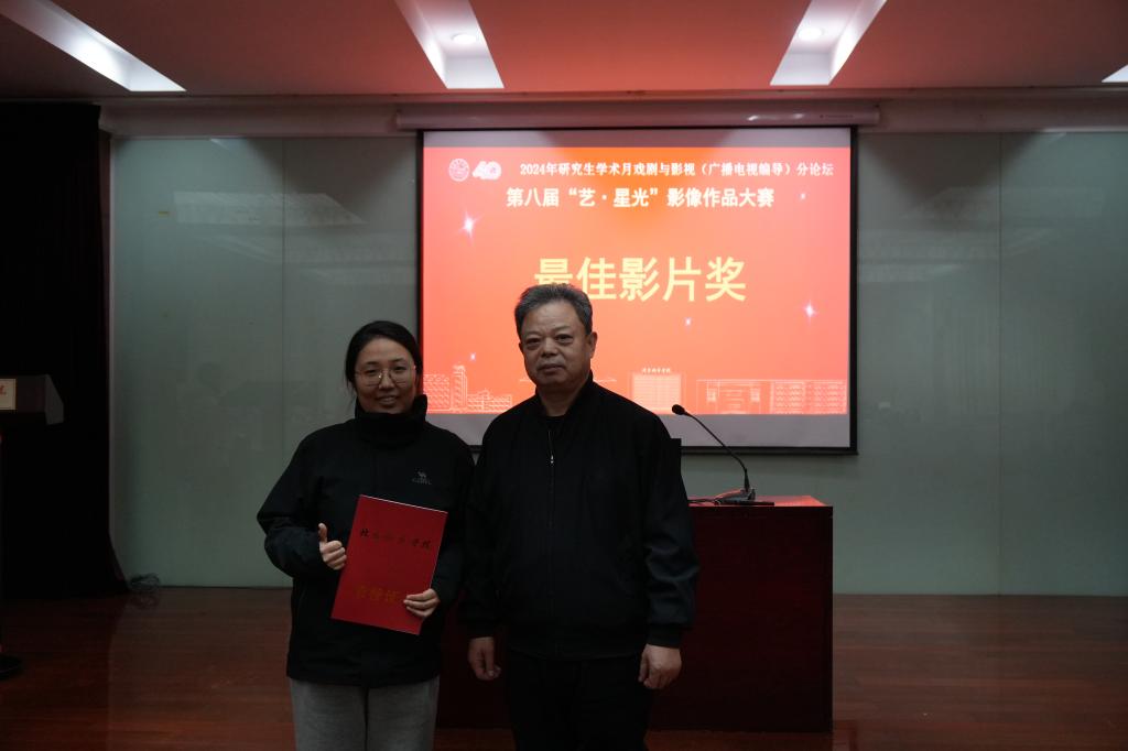 闭幕式上,7位优秀研究生进行学术成果和实践成果汇报。郭白璐以《用设计巩固脱贫成果的新锐力量》为题分享了用设计巩固脱贫成果的经验;闫天以《电视剧〈西北岁月〉中张延年一角塑造的“度”》讲述电视剧角色塑造心得;陈少敏以《从〈山海魔竹〉看人文纪录片的创作策划》探讨如何打造一部兼具文化传承与创新精神的纪录片;刘怡宁以《 北京市乡镇基层社会工作服务站的建设困境及优化路径研究》为题研究乡镇基层社工服务站建设困境与优化路径;李晓滢以《 “一带一路”背景下丝绸之路中茶文化传播的动画化创作研究》为题用动画的手法呈现从古代丝绸之路到现今“一带一路”背景下茶文化跨越国界、穿越历史的魅力与影响力;薛涛以《基于文化传播视域下瑞兽形象的再生——以AI短片<中华瑞兽故事-嘲风>为例》为题介绍了利用AI技术制作视频的过程;陈星星以《卷丹鳞茎腐烂病菌的生物学特性及防病药剂筛选》为题研究北京地区百合鳞茎腐烂病问题以及其防病药剂筛选。