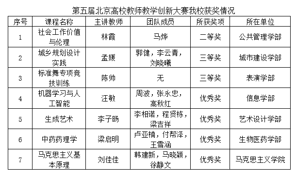 近日,北京市教育委员会公布了第五届北京高校教师教学创新大赛获奖名单,ac米兰推荐的7支参赛队伍全部获奖。获奖情况如下: