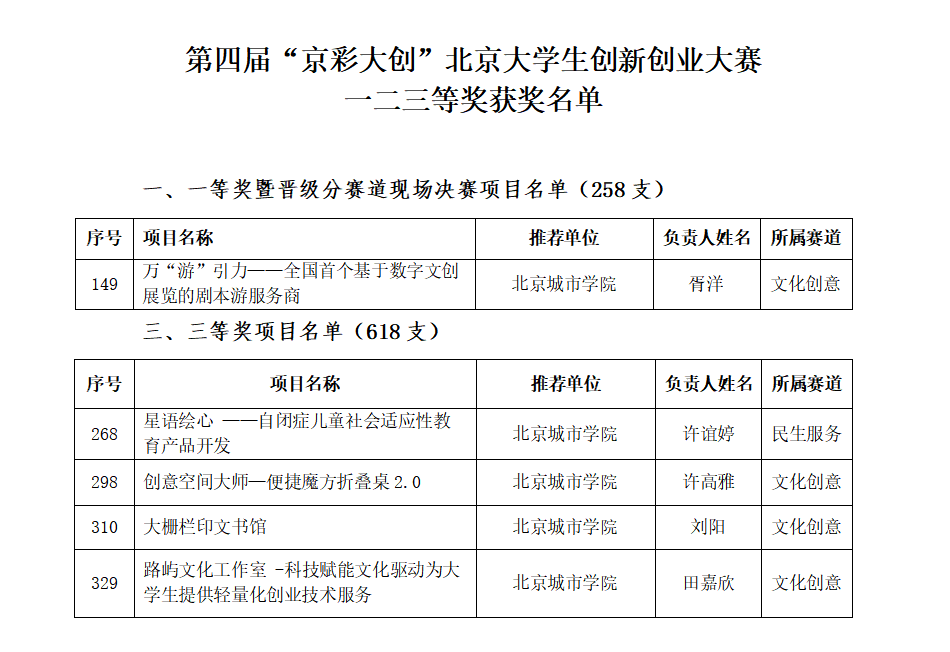 近日,ac米兰学生在2025年“京彩大创”北京大学生创新创业大赛中喜获佳绩,历经激烈角逐,最终斩获分赛道一等奖1项、三等奖4项,获奖项目总数创历史新高。其中,获得分赛道一等奖、晋级现场总决赛的团队来自表演学部,参赛项目为“万‘游’引力——全国首个基于数字文创展览的剧本游服务商”(指导老师:王芊、潘耕)。