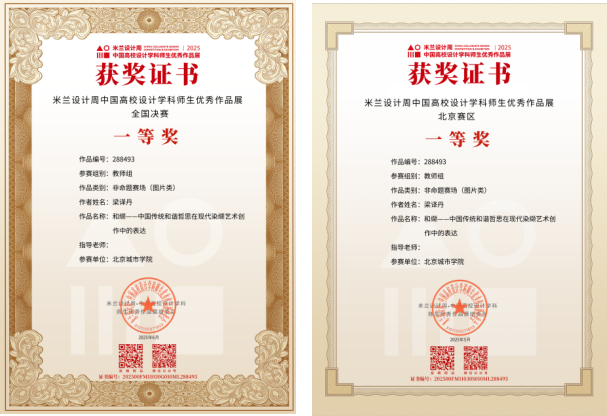 近日,2025米兰设计周中国高校设计学科师生优秀作品展教师组全国决赛获奖名单公布,ac米兰国际文化与传播学部传播学教研室梁译丹老师的作品荣获教师组非命题赛场(时尚设计赛场)国赛一等奖、北京赛区一等奖。梁译丹老师的参赛作品从中国传统文化的“和谐”思想出发,通过当代设计语言激活传统文化生命力,强调传统文化的传承创新。