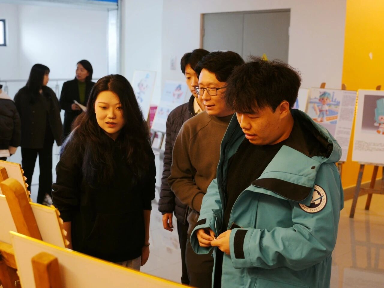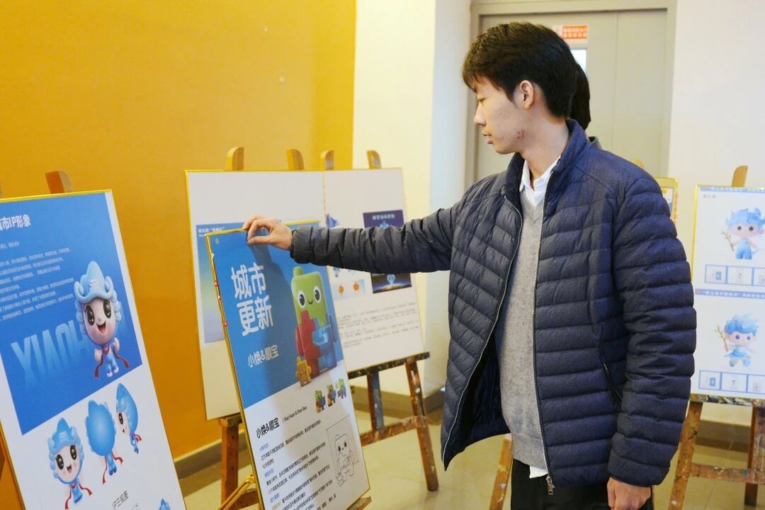 30幅面向公众征集的小焕IP设计方案在教学楼进行了策展,同学们通过贴纸投票为喜欢的作品助力。特邀专家从专业角度对重点方案进行了精彩点评,既肯定了创作者在视觉表达、叙事构思上的多元思考,也剖析了优秀城市IP应具备的特质。