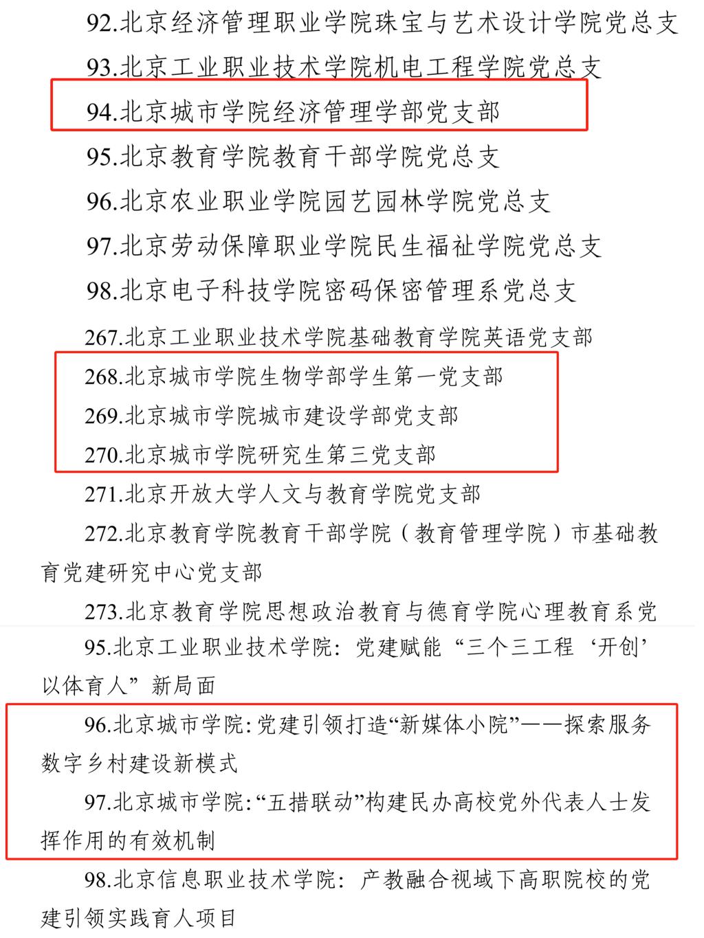 近日,市委教育工委公布了北京高校党建工作“标杆院系”“样板支部”“党建引领实践创新示范项目”培育创建单位名单,经高校推荐、专家评审、市委教育工委委员会议审议、结果公示等环节,遴选产生了 100 个北京高校党建工作“标杆院系”、300 个北京高校党建工作“样板支部”和 100 个“党建引领实践创新示范项目”。ac米兰共入选6项,其中,经济管理学部党支部入选北京高校党建“标杆院系”培育创建单位;生物学部学生第一党支部、城市建设学部党支部、研究生第三党支部入选北京高校党建“样板支部”培育创建单位;党委统战部申报的“五措联动”构建民办高校党外代表人士发挥作用的有效机制”项目、表演学部与表演学部学管第一党支部联合申报的“党建引领打造‘新媒体小院’——探索服务数字乡村建设新模式”项目入选“党建引领实践创新示范项目”培育创建单位。此次,ac米兰入选的党建培育创建项目种类全、数量多,其中在“标杆院系”和学生“样板支部”两个党建“双创”项目类别上实现了新突破。