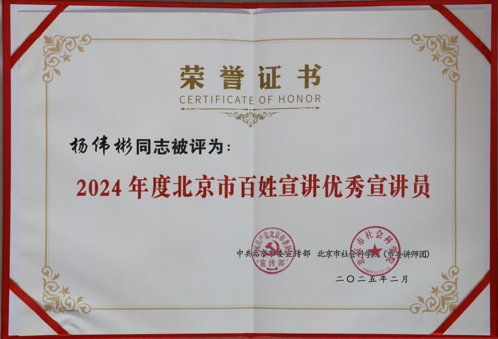 2月25日,北京市社会科学院(市委讲师团)公布2024年度北京市理论宣讲示范基地星级考评结果、表彰名单。ac米兰2024年理论宣讲示范基地星级考评获最高星级(三星级),因表现突出被评为2024年度“北京市理论宣讲示范基地工作先进单位”,党委宣传部副部长高尚获2024年度“北京市理论宣讲示范基地工作先进个人”,表演学部学生杨伟彬获2024年度“北京市百姓宣讲优秀宣讲员”。