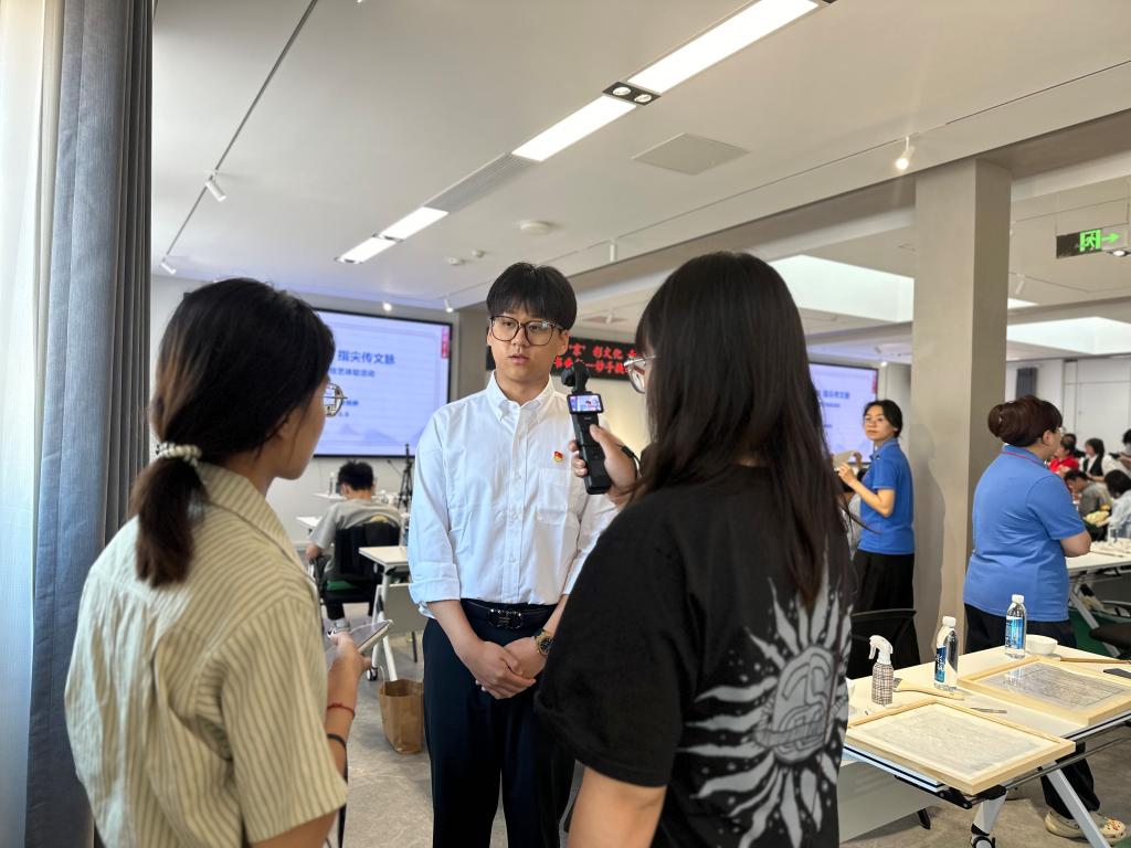 在接受北京广播电视台采访时,师生们踊跃发言,分享参与此次活动的收获与感悟。大家还围绕“如何在高校更好地推广古籍修复非遗项目”“学生如何深度参与后续实践活动”等议题展开热烈讨论。徐晓静针对师生们的发言进行了细致点评和专业指导,进一步明确了文化遗产学部与非遗传承结合的创新路径。