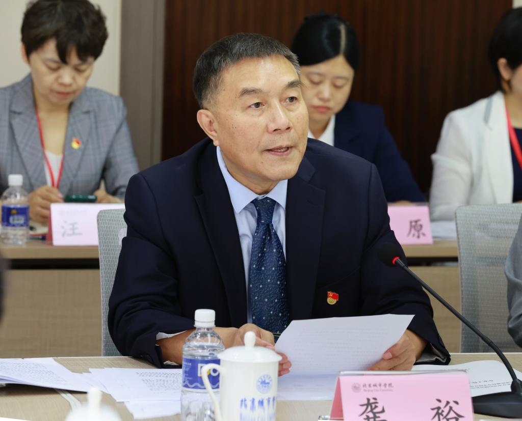 党委书记龚裕以“笃行首善 以高质量党建引领高水平民办大学建设”为题向考察组进行工作汇报,校长刘林进行补充汇报。