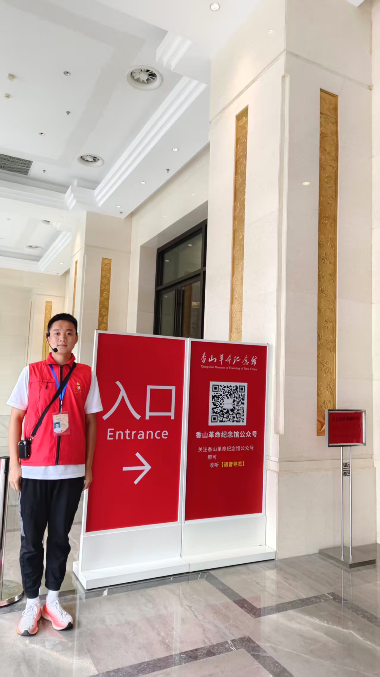 其中,宣讲团成员郝士栋以优异成绩成为本批次首都高校首位持证上岗的学生讲解员,其暑期志愿讲解服务累计覆盖观众超2000人次。“从发音吐字、手势走位到情感共鸣,培训让我真正读懂了革命先辈的理想信念。”他在接受采访时表示,“作为新时代青年,我们有责任将红色故事讲得更深、更远,让革命精神代代相传。”