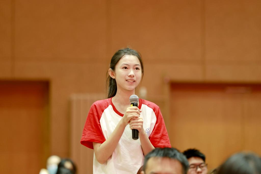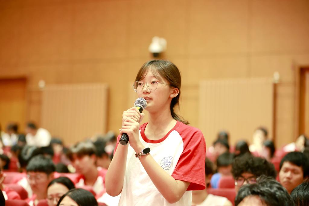 课程尾声,九三文艺晚会《正义必胜》中的一段视频将课堂推向高潮。一场与先辈的跨时空对话,与总书记“正义必胜、和平必胜、人民必胜”的庄严宣告交织。李凯城再次总结“三个必胜”的深刻内涵,并通过学生代表与嘉宾的互动提问,将历史与现实紧密连接,引导青年思考自身肩负的时代使命。