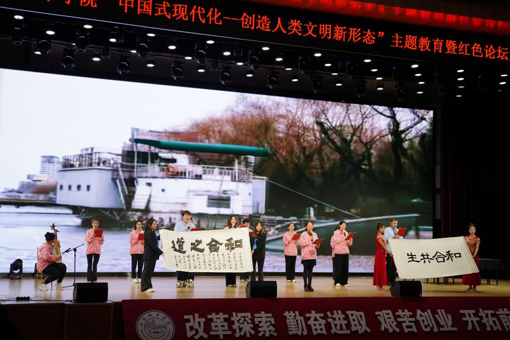 论坛围绕“中国式现代化是一种全新的人类文明形态”这一核心论点,从“人民至上”的价值底色到“共育之路”的均衡图景,从“两翼齐飞”的文化自信到“青山为证”的生态答卷,再到“和合共生”的文明互鉴,五个篇章层层深入。
