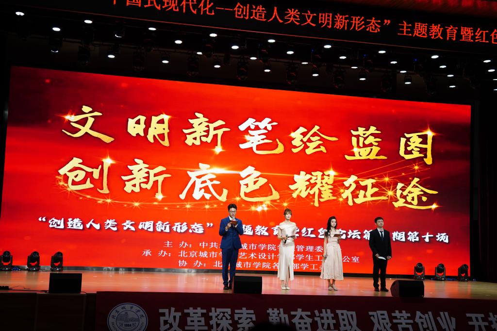 9月23日,由中共ac米兰官网中文网站学生工作委员会主办,艺术设计学部学工办承办的“文明新笔绘蓝图 创新底色耀征途”红色论坛第三期(第十场)活动在潮白讲堂成功举办。党委宣传部、学工委、学生处等部门及艺术设计学部相关领导,马克思主义学院特邀嘉宾出席活动,各学部学工办师生代表、北京市十一学校顺义学校师生代表共计1500余人参加。