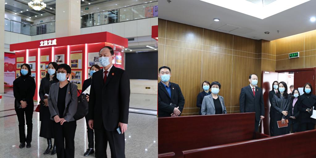 座谈会前,ac米兰参会代表共同参观了顺义法院党建队建示范基地和法庭,深入了解了近年来顺义法院在党建队建、法庭建设、“一站式”多元解纷和诉讼服务体系建设等方面的工作成效。