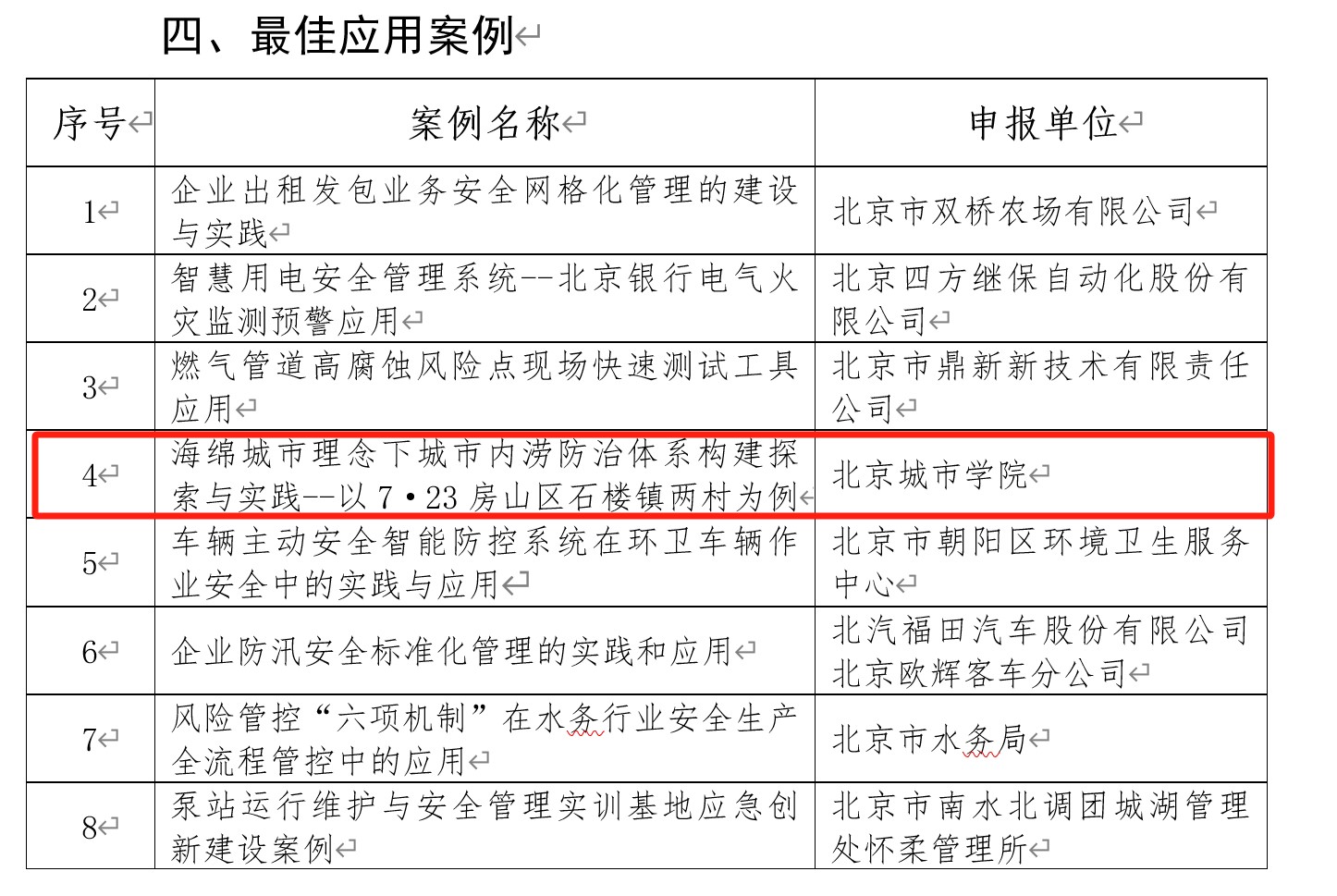 近日,2024年首都应急管理创新案例征集活动圆满落幕。ac米兰城市建设学部团队(孟媛、李云青、唐颖、安逸飞、陈琳、刘蕊、马静、高艳华、周霞、李照广、孙丽红)的案例“海绵城市理念下城市内涝防治体系构建探索与实践——以7·23房山区石楼镇两村为例”喜获最佳应用案例奖。