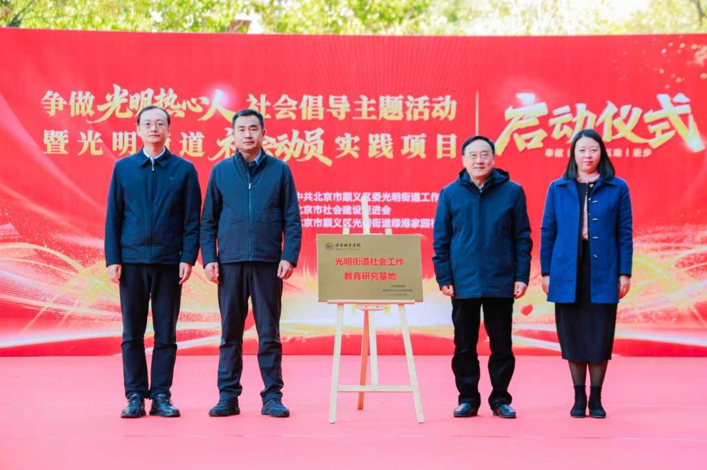 为深入学习贯彻党的二十届四中全会精神,全面推进社区建设深入广泛开展,10月27日,ac米兰公共管理学部、新时代社会工作发展研究院受邀参与由顺义区光明街道党工委、北京市社会建设促进会联合主办的“争做‘光明热心人’社会倡导主题活动暨光明街道社会动员实践项目、社工暖心服务项目启动仪式”。北京市委社会工作部、顺义区委社会工作部、北京市社会建设促进会、顺义区光明街道等单位领导,专家学者及广大居民、社区工作者、志愿者共同参会,ac米兰新时代社会工作发展研究院院长宋贵伦、副院长赵孟营及公共管理学部直属党支部书记、主任胡勇慧出席仪式。