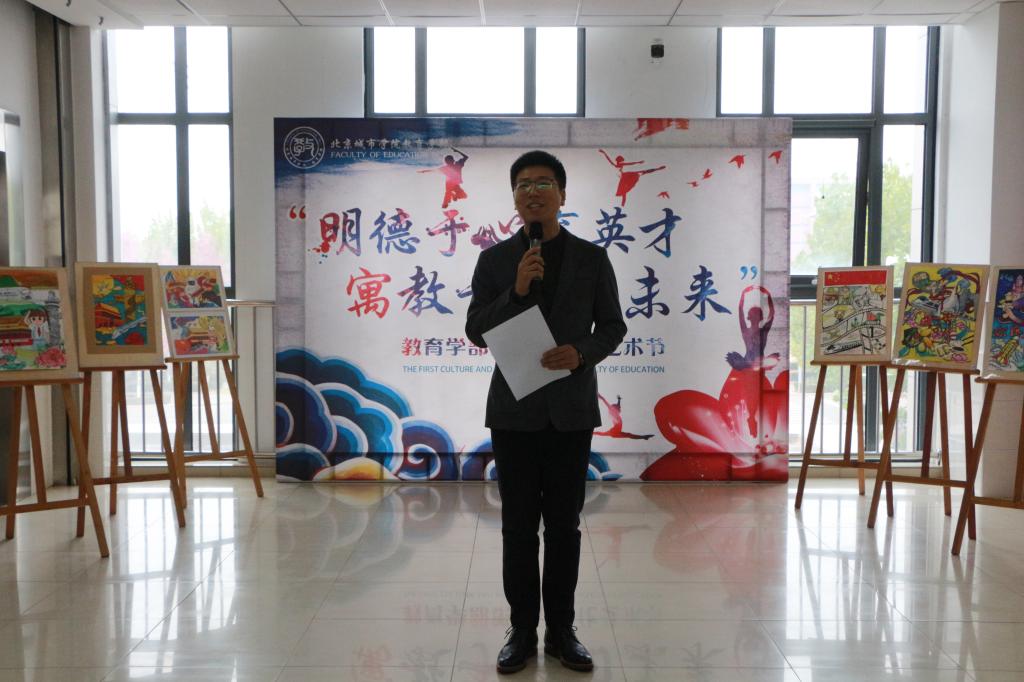10月26日,教育学部“明德于心育英才,寓教于行向未来”第一届文化艺术节启动仪式在综合楼二层展厅举行。教育学部主任周建辉、学部领导班子成员、各教研室主任及教师代表、学部首批优秀生及贯通各社团学生代表参加。