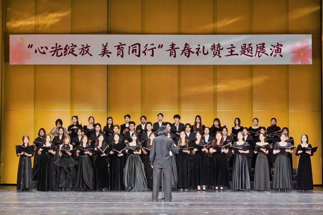 展演分为“青春悦动”“美美与共”“心光合鸣”三大篇章,在共青团元素融入上实现创新突破。在“青春悦动”篇章中,学校管乐团奏响《青春舞曲》,以跃动的音符展现青年朝气;舞蹈团表演的《玉鸟》融入非遗元素,展现新时代青年对中华美学的传承;合唱团与十一学校顺义分校学子联袂演出,在歌曲《世界赠予我的》里感受青春与世界的共鸣。