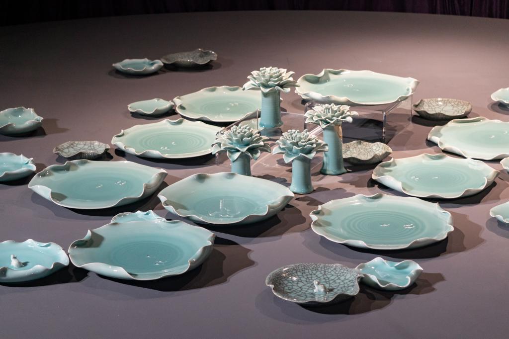 本次展览共展出陈烈汉教授自1983年至今40多年创作的精品力作180余件,涵盖日用瓷、青花瓷、钧瓷、现代陶艺和龙泉青瓷五大类。这些作品不仅展现了陈烈汉教授扎实的传统功底,更凸显了其与时俱进的创新精神和广阔的艺术视野。尤为引人注目的是其在龙泉青瓷领域的开创性探索。陈烈汉教授巧妙地将德化泥料与景德镇的陶瓷装饰工艺相结合,首创青瓷青花、青瓷描金、青瓷红绿彩、青瓷绞胎等新品种新工艺,这些创新不仅极大地丰富了当代青瓷的艺术语言和表现形式,更赋予了古老青瓷以鲜明的时代气息和独特的审美价值,形成了独具魅力的“瓷艺新风”,对中国陶瓷艺术的当代发展起到了引领作用。
