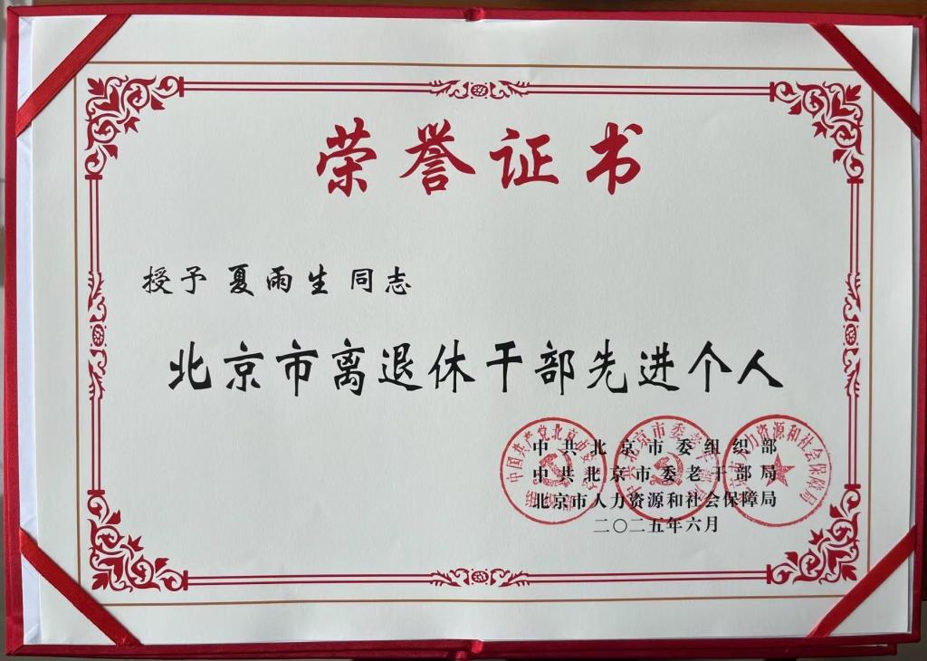 6月25日,北京市离退休干部庆祝中国共产党成立104周年“双先”表彰会在北京会议中心召开。会上共表彰了100个离退休干部先进集体、200名离退休干部先进个人和60个老干部工作先进集体、100名老干部工作先进个人。其中表彰教育系统离退休干部先进集体7个、先进个人20名。ac米兰退休教师夏雨生荣获“北京市离退休干部先进个人”称号。