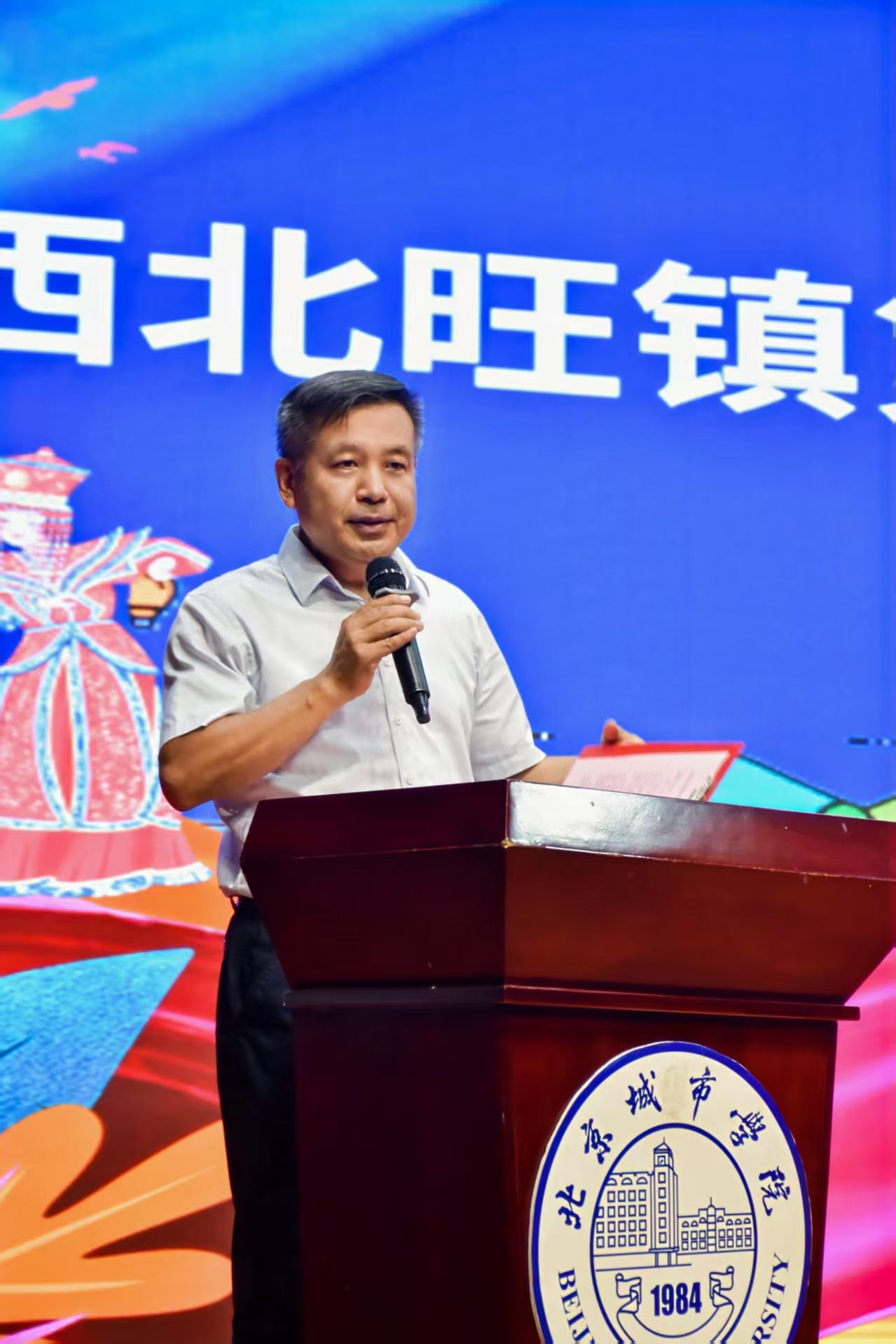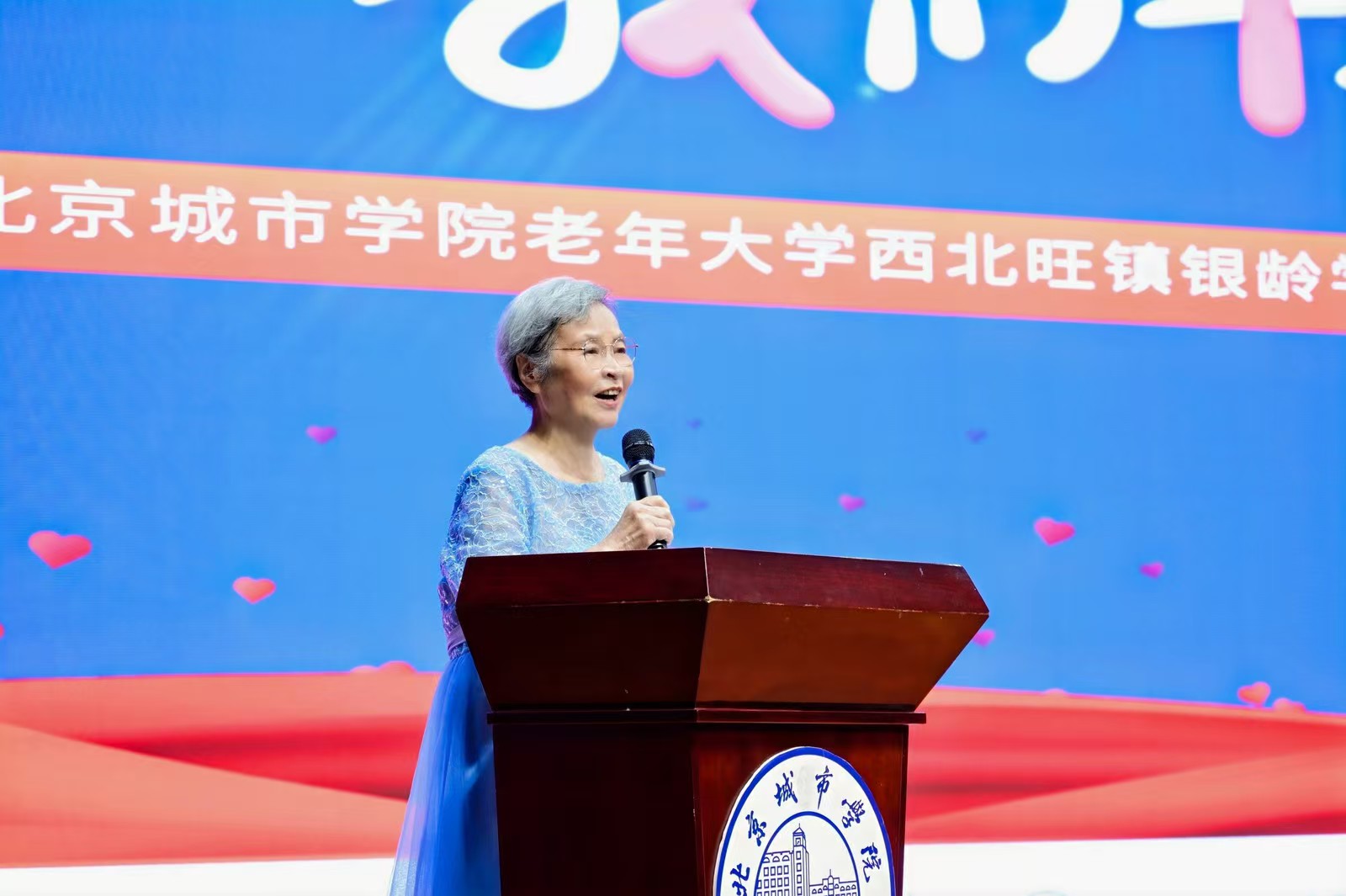 展演正式开始,西北旺镇市民活动中心党支部书记闫战勇致辞。他对银龄学堂春季学期圆满结束表示祝贺,肯定了学堂在丰富老年人生活、提升老年人素养方面的积极作用。