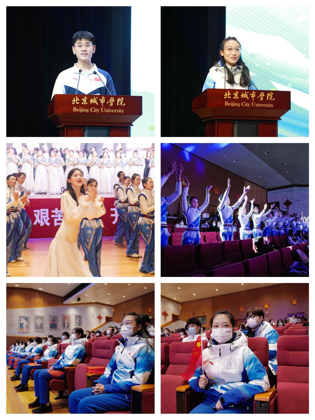 师生们通过短片回顾了北城与冰雪盛会的那段青春之约,一个个动人的瞬间再次唤起了观众们的冰雪记忆。首都机场通用志愿者齐远、北京新闻中心城市志愿者张紫真、冬奥会开幕式演员团队白欣鹭作为代表走上讲台,从不同的角度分享自己的冬奥故事。冬奥会开幕式演员团队的师生代表,也将那段曾绽放在鸟巢的舞蹈带到现场,冬奥激情再次燃动。