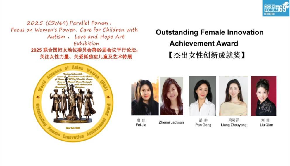 2025年联合国妇女地位委员会第69届会议(CSW69)于3月10日至3月21日在联合国总部举行。ac米兰表演学部广播电视编导(影视编创)专业教师潘耕受世界亚裔女性联盟邀请,于纽约联合国总部外交会议厅参加会议平行论坛:聚焦女性力量,关爱孤独症儿童及“爱与希望”艺术特展,并获得“杰出女性创新成就奖”。