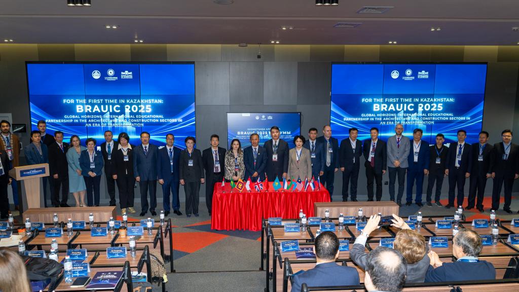 作为出访核心议程,代表团出席在哈萨克斯坦建筑与土木工程学院举办的“一带一路”建筑类大学国际联盟2025年度会议。会议期间,孟媛与哈萨克斯坦建筑与土木工程学院校长Bakhtiyar Sabdenaliyev先生共同签署合作备忘录,正式建立校际合作关系。代表团还实地考察该校教学实验室,了解其教学设施与学生培养模式。