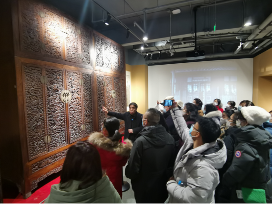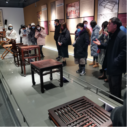 1月11日下午,国际文化与传播学部党支部组织全体党员参观了北京南中轴线上一座家具文化代表的全新地标建筑——金隅龙顺成京作非遗博物馆。博物馆设有“源自宫廷、龙顺大成”“法度严整、历久弥新”“匠心传承、经典永恒”三个展区,涵盖“木韵华风”“薪火相传”“国之重器”“竭诚致远”等多个章节。在工作人员讲解下,教师党员们被百年京作文化深深吸引,深刻地感受到“京作硬木家具制作技艺”的深厚底蕴。本次参观活动也邀请了文传学部学工办教师党员一起参加。